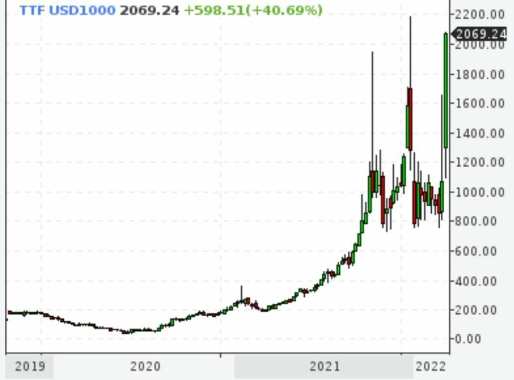 l’Europe n’est pas épargné non plus par la situation. Le prix du gaz en Europe a dépassé la barre de 2000$ par 1000 m’être cube. Une hausse de 40%.
