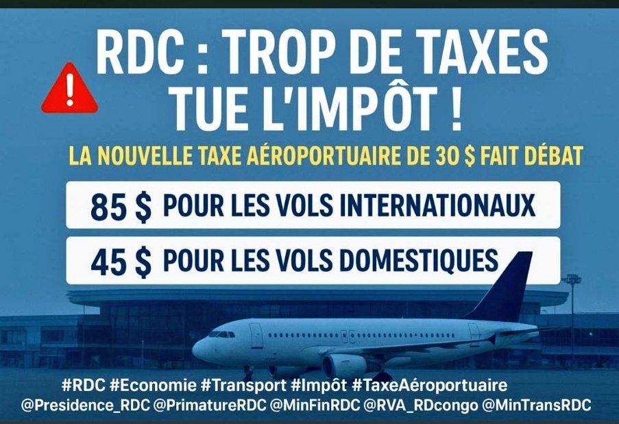 Richie Lontulungu sur son compte X: “La redevance de 30$ annoncée pour chaque voyageur se fonde sur aucune base légale. Comme est le cas jusqu’à présent avec celle de 50$/GoPass. Introduire cette taxe est illégale. Les autorités doivent revenir au bon sens, abandonner l’idée, et arrêter de mettre la main nos poches.”